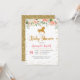 Inbjudan för karusellhästbaby shower med härliga blom- och guld- konfettiar för persika.