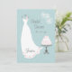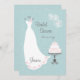 Den eleganta den vitbröllopsklänningen, tårtan och blommor på en blek - slösa den damastast bakgrundsinbjudningskort för möhippan. Matcha tackar dig att card visas nedanfört.
