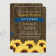 EN THEMED INBJUDNINGSKORT FÖR MÖHIPPAN FÖR SOLROS MED EN LANDBERLOCK OCH EN LANTLIG KÄNSELFÖRNIMMELSE. FÖR STAKET- ELLER TRUMMALOOK FÖR WOOD KORN EN TRÄDESIGN OCH EN NAGELHUVUDKLIPPNING. DEN SPELAR INGEN ROLL SKRIVAN ÖNSKAR DRAR TILLBAKA DU PÅ FÖR BANDBANRET FÖR KOBOLT DEN BLÅTT UTSKRIVAVNA DESIGNEN FÖR LOOKEN PÅ BEKLÄDA OCH AV DENNA INBJUDAN. TILLFOGA INITIALER AV BRUDEN OCH ANSA INSIDA DEN SNED HJÄRTADESIGNEN PÅ BAKSIDAEN AV INBJUDAN. EN BUKETT AV GULD- GULA SOLROSOR HAR EN VINTAGE OCH EN PAINTERLY LOOK. PERFEKT FÖR PAR MÖHIPPA ELLER MÖHIPPA MED ETT TEMA FÖR FÖR BARNYARDLADUGÅRDLANTGÅRD ELLER LANTBRUKARHEM. STUDIOR FÖR DESIGN©CHRISSY H., LLC. ALL RESERVERAD RÄTTIGHETER.
