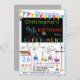 Tryckbar inbjudan för vetenskapsexperimentparty. Laboratoriumklassrumtemat som kombineras med kemisk formel, och ett klassrum stiger ombord rundat med blåttrandramen. Perfekt för en galen experimentell afton med vänner.