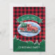 Inbjudangäster till din julfest med detta kort som presenterar en vinterplats av en röd pickup lastbil för klassiker som kör till och med snön, en ny julgran i baksidaen. Ett ovannämnt grönt baner har ett efternamn för att dig ska personifiera. Bakgrund är ett rött och svart buffelkontrollmönster med en gräns av gröna grästräd. Personifiera med ditt egna party specificerar.