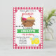 Denna picknickfödelsedaginbjudan presenterar en picknickbasket, pajen, vattenmelonen och en tillbringare av lemonade på en vitram med en röd plädmönstergräns. Designen presenterar också ett grönt baner. Denna färgrika picknickinbjudan är ideal för en sommarpicknick, och alla text är ätlig danande det som är passande för olika tillfällen. Denna picknickfödelsedaginbjudan är klar att vara personligen.