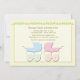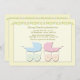 En charmig inbjudan, som är perfekt för en pojke och en flicka, kopplar samman baby shower. Bleken - gula bakgrundssärdrag två barnvagnar och en delikat vine gränsar.