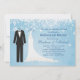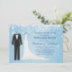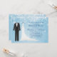 Denna moderna inbjudan presenterar en brudgum svart smoking och vitbrud bröllopsklänning på en blåttbakgrund. med snöflingor. Du kan använda denna inbjudan för att gifta sig meddelanden, förlovningsfestinbjudningar, sparar datera, repetition middag eller att gifta sig luncheoninbjudningar.
