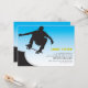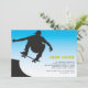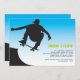 En siluett skateboardfigur mot en blå till vit bakgrund. Perfekt skateboardinbjudan för alla åldrar. Kortet är lätt att anpassa med din text, teckensnitt, teckensnittsfärg och val av sex papperssorter.