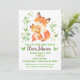 En vattenfärgdesign av en morräv som kramar henne bebis. Denna förtjusande inbjudan presenterar löv och grönska och ideal för en themed baby shower för skogsmark för endera en pojke eller flicka. Denna neutrala inbjudan för gender presenterar också härlig modern calligraphy.
