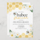 En liten honung är på väg! Babee Bumblebee-babyduschinbjudan med bin och honeykomb-design.