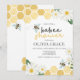 En liten honung är på väg! Babee Bumblebee-babyduschinbjudan med bin och honeykomb-design.