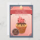 En mångsidig inbjudan som kan användas för ett bebisstänk, möhippa eller som en födelsedagsfest inbjudan. Dentittar muffinen har chokladduggregn och stänk och en rosa dollop av piskad kräm. Bakgrunden är en rosa strålpunkt över grått med ett bärbaner, och dekorativt tränga någon. (FP)