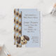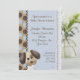 Vår inbjudan för valphundbaby shower visar honom som biter ett biet ut ur papperet och, kommer i poka pricker med blåttplädet och bruntbakgrund. Denna design kommer också i porto och andra gåvaobjekt till matchen.