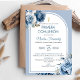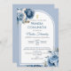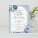 Bjud in familj och vänner att fira din sons första heliga kommunion med denna vackert designade inbjudan. Det gyllene korset och blå blommor ger en elegant och religiös touch till detta katolska tema kort.