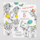 Femtonårsinbjudan med lustigt söta djurillustrationer ritade i pennskiss stil.