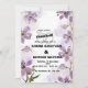 Sätt tonen för din speciella dag med denna romantiska blommande bröllopsinbjudan med mjuka akvarellstila lila blommor och en charmig layout. Designen är tidlös och personlig, perfekt för par som vill fira sin kärlek med en touch av elegans och kreativitet. Oavsett om du är värd för en stor fest eller en intim sammankomst, skapar denna inbjudan ett vackert första intryck.