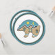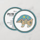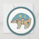 Inbjudan med en Native American björn-ikon med symboler och mönster i ljust blått och brunt.