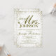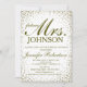 Den här inbjudan är ett unikt och roligt sätt att kasta en möhippa. Guld konetti-bakgrunden lägger till lite glam och ser underbar ut mot den vita bakgrunden. Om du vill ha fler kort med utseendet på glitter (men utan ) kan du gå till GlitterInvitations.com eller Zazzle.com/GlitterInvitations (Observera att detta kort är ett grafikkort som inte innehåller glitter).