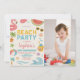 Ställ in vibe för en coola sommar firande med det här trendiget Beach Birthday-inbjudan och dekorera för barn! Med fet färg, havsvatten inslag, handflatan löv, strand bollar och solsken är denna utformning perfekt för moderna födelsedagsfester vid havet, vid bassäng eller på din bakgård. Anpassa med uppgifter om ditt barns namn, ålder och party. Roligt och snyggt för pojkar eller flickor som kärlek sommar! Fyll i utseendet med matchande tecken, favärde -taggar och tropiska party-tillbehör.