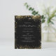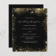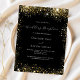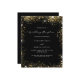En modern mottagningsinbjudan från elegant bröllop. Svart bakgrund dekorerad med faux guld glitter-gnistor. Anpassa och lägg till information om namn och bröllop. Vit färgad brev. 1 lakan = 1 inbjudan tryckt kant till kant.