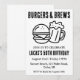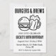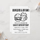 Firar din speciella dag med en bakbänkad och många turer! Den här hjältemodiga inbjudan innehåller en delikat tittar burgare och en kall öl, perfekt för en vuxen födelsedagsfest. I designen ingår nyckelorden "cheers", "öl" och "backyard" för att hjälpa dig att hitta inbjudan till perfekten för firande.