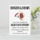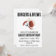 Firar din speciella dag med en bakbänkad och många turer! Den här hjältemodiga inbjudan innehåller en delikat tittar burgare och en kall öl, perfekt för en vuxen födelsedagsfest. I designen ingår nyckelorden "cheers", "öl" och "backyard" för att hjälpa dig att hitta inbjudan till perfekten för firande.