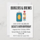 Firar din speciella dag med en bakbänkad och många turer! Den här hjältemodiga inbjudan innehåller en delikat tittar burgare och en kall öl, perfekt för en vuxen födelsedagsfest. I designen ingår nyckelorden "cheers", "öl" och "backyard" för att hjälpa dig att hitta inbjudan till perfekten för firande.