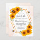 En sommar och faller möhippa. En vit och guldfärgad bakgrund med snyggt. Ett faux guld geometric ram och humla. Med texten: Bride to Bee och namn i bruden som ska vara framtill skriven med ett modernt handskript skrivet stil. Black brev.