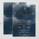 Inbjudan till babyfest över månen, marinblå och guld måne och stjärnor med moln inbjudan till babyfest