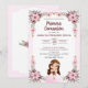 Fira din flickas första Heliga-förening med denna vackra katolska inbjudan! Den har fantastiska rosa blommor och en söt flicka. Español/spanska: Celebra la Primera Comunion de tu hija con esta invitacion.
