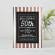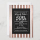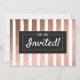 Modern svartvit, ro guld--minnesinbjudan med anpassade om den geometriska utformningen bröllop. Rosa guld trendig stil är inbjuden till textruta.