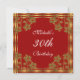 Inbjudan till Red Guld & Guld Flowers & trim, vit skrift Abstrakt Party Smala Long. Födelsedag