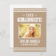 Coola Rustic studenten-barbecue-partypografi med vintage och med papper bakgrund. Lägg till ditt överordnade foto, namn, klassår och namn i skolan på framsidan med information om studentfesten på baksidan. Klicka på Anpassa om du vill lägga till fler foton och texter, redigera typsnitt och färg om du vill skapa ett unikt meddelande och en gruppinbjudan från studenten.