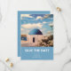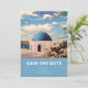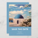 Detta är en akrylhandmålning av Santorini Greece för att spara datumet. Med ljusblå bakgrund är denna moderna och enkla utformning perfekt för destinationsbröllop i Grekland. Perfekt för dem som kärlek stranden, blommor, konst och arkitektur. Anpassa och anpassa med din bröllop-information.