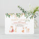 En bedårande, akvarell- inbjudan med skogsdjur som passar perfekt som bebis- eller barnkalasinbjudan. Designen visar fallande löv, en sittande björnunge, en kanin, en liten räv och en dovhjort. (<a href='https://www.freepik.com/free-vector/beautiful-border-with-wild-leaves_2955973.htm'>Designad av BiZkettE1</a>). (<a href='https://www.freepik.com/free-vector/lovely-watercolor-forest-animals_2955967.htm'>Designad av Saravami</a>). <br/><br/>Kortet är lätt att anpassa med din text, typsnitt och typsnittsfärg.<br/><br/>Inte exakt vad du söker? Alla våra produkter kan anpassas för att möta dina behov utan extra kostnad.<br/><br/>Kontakta oss helt enkelt på heartfelthelper@gmail.com.<br/><br/>Koordinerande produkter finns: Fråga oss!