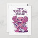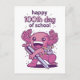 Söt design med en axolotl som bär en ryggsäck och håller i en stor penna med citatet "Glad 100:e skoldag". Glad 100 skoldagar eller Glad 100:e dagen i förskoleklassen.