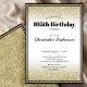 Denna eleganta glittrande guld-inbjudan till 105-årsfest är perfekt för en vuxens födelsedagsfest. Baksidan och framsidan har tryckt guldglitter och svart text på vit bakgrund. Inbjudningsmallen är anpassningsbar i listredigeraren och finns även som digital nedladdning som du kan skicka i ett e-postmeddelande eller sms efter att du har anpassat den.