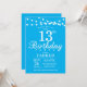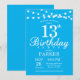 Inbjudan till 13-årsdag med strängljus. Blå bakgrund. Barnens födelsedag. Pojke eller flicka Födelsedagsinbjudan för dam. 13:e 15:e 16:e 18:e 20:e 21:a 30:e 40:e 50:e 60:e 70:e 80:e 90:e 100:e, Alla åldrar. För ytterligare anpassning, klicka på "Anpassa den"-knappen och använd vårt designverktyg för att ändra denna mall.