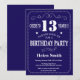 13:e födelsedagsinbjudan Inbjudan - Vit- och blått typografi. Tunga blå och vit bakgrund. Barns födelsedag. Manliga Manar eller Kvinnor födelsedag. Barnpojke eller Dam Tonåring tonårsdagen Inbjudan. 13:e 15:e 16:e 18:e 20:e 30:e 40:e 60:e 70:e 80:e 90:e 100:e. Vilken ålder som helst.