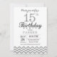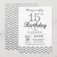 Inbjudan till 15-årsdag med Silver Glitter Chevron. Svart och Silver Glitter. Barnkalas. Inbjudan till pojke eller flicka. För ytterligare anpassning, klicka på "Anpassa"-knappen och använd vårt designverktyg för att ändra denna mall.