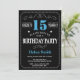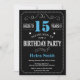 15:e födelsedagsinbjudan Blått och svart typografi. Chalkboard. Svarta och vita bakgrunden. Vuxen födelsedag. Manliga Manar eller Kvinnor födelsedag. Barnpojke eller Dam Tonåring tonårsdagen Inbjudan. 13:e 15:e 16:e 18:e 20:e 30:e 40:e 60:e 70:e 80:e 90:e 100:e. Vilken ålder som helst.