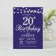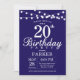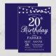 Inbjudan till 20-årsdag med strängljus. Marinblå bakgrund. 13:e 15:e 16:e 18:e 20:e 21:a 30:e 40:e 50:e 60:e 70:e 80:e 90:e 100:e, Alla åldrar. För ytterligare anpassning, klicka på "Anpassa"-knappen och använd vårt designverktyg för att ändra denna mall.