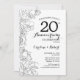 Svart Vit Blommig Inbjudan till 20-års bröllopsjubileum. Modern minimalistisk design med botaniska teckningar och typsnittsstil. Elegant välkomstkort perfekt för en stilig fest. Kan anpassas till vilket äktenskapsår som helst. Tryckta Zazzle-inbjudningar eller direkt nedladdningsbar digital utskriftsmall.