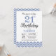Inbjudan till 21-årsdag med Blue Chevron. Svart och vit. Vuxen födelsedag. Födelsedagsinbjudan för man eller kvinna. För ytterligare anpassning, klicka på "Anpassa"-knappen och använd vårt designverktyg för att ändra denna mall.