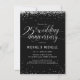 Denna eleganta och festliga inbjudan till 25-årsjubileum för silverbröllop mäter 4.5" x 6.25" och har silverfärgade (simulerad folie) konfetti med texten "25-års bröllopsdag" i ett silverfärgat skrivstil. Bakgrunden är svart, men kan ändras till valfri färg. Festdetaljerna kan enkelt anpassas för ditt speciella evenemang. Baksidan av kortet har ett silverprickigt mönster, också med svart bakgrund, som du kan anpassa efter eget tycke. Ett vackert och enkelt sätt att inbjuda gäster att fira ett silverbröllop.