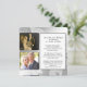 Denna vackra och eleganta design, kallad 25:e Rose Garden Photo Wedding Anniversary, har en silver- och vitfärgsgradient med öppna rosor som tonar ut i bakgrunden. På framsidan finns två fotramar för dina bilder. Till höger finns en vit textruta för ditt meddelande. Denna design är perfekt för paret som firar sin silverbröllopsdag med den speciella silverdesignen som en hyllning till traditionell bröllopspresent. Det här vore perfekt för din tjugofemårs bröllopsdag eller kalas!