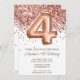 Inbjudan till partiet 4e födelsedagen i ro och ro guld-elegantens moderna inbjudan till 4e födelsedagen för en 4-årig flicka med moderna skript- och roligt-fotballonger.