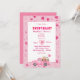 Den här inbjudan är perfekt för ett sött 4e födelsedagen party! På inbjudningens framsida finns ett rosa lastbil med blommor, ballonger och hjärtan. Bakgrunden är rosa och röda hjärtan. Använda mallen som du vill lägga till information om party.