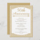 Denna inbjudan till 50-års bröllopsjubileum har en vit ram med en fin guldfärgad kant och en gulbrun och vit mönstrad bakgrund. Designen inkluderar en dekorativ avdelare på den övre halvan. Den är redo att anpassas och är lämplig för en 50-års bröllopsdag.
