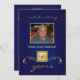Personliga 60-årsfirande inbjudningskort med eget foto -- Eleganta manliga blå födelsedagsinbjudningar med dekorativa guldfärgade detaljer och monogram. Lägg till ditt eget foto och anpassa namnet, datumet och detaljerna för vilket år eller lyckligt tillfälle som helst. Perfekt för både moderna och vintagefoton. Matchande porto och tackkort finns tillgängliga. **OBS: Storlek anpassad för standard 5 x7 inbjudningskort. Klicka på "ANPASSA" för att ändra storlek. Andra färger och stilar finns i galleriet.