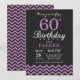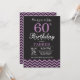 Inbjudan till 60-årsdag med svart och lila Chevron. Kritbräda. Vuxen födelsedag. Inbjudan till födelsedag för man eller kvinna. För ytterligare anpassning, klicka på "Anpassa"-knappen och använd vårt designverktyg för att ändra denna mall.