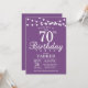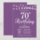 Inbjudan till 70-årsfirande med strängljus. Lila lavendel syren bakgrund. Kvinnor dam elegant modern födelsedag. 13:e 15:e 16:e 18:e 20:e 21:a 30:e 40:e 50:e 60:e 70:e 80:e 90:e 100:e, Alla åldrar. För ytterligare anpassning, klicka på "Anpassa"-knappen och använd vårt designverktyg för att ändra denna mall.