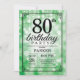 Inbjudan till 80-årsfirande med gröna strängljus och grön glitterbakgrund. Grönt födelsedagsfirande. Vuxen födelsedag. Födelsedagsinbjudan för män eller kvinnor. 13:e 15:e 16:e 18:e 20:e 21:a 30:e 40:e 50:e 60:e 70:e 80:e 90:e 100:e, Alla åldrar. För ytterligare anpassning, klicka på "Anpassa"-knappen och använd vårt designverktyg för att ändra denna mall.